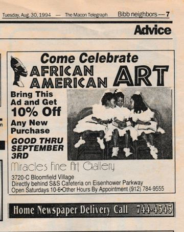 In 1990, Melgenia and Vernon Redd opened a gallery called Miracles Fine Art, and it was the first institution of its kind in Macon, GA, that specialized in exhibiting the work of Black artists. Inspired by an activist passioned forged in an era that saw the end of Jim Crow, they were determined to contribute to the preservation and celebration of Black art and culture. Over time, they built a collection of over 800 items, including paintings, sculptures, masks, mixed media works, and woven fabrics. In 1996, the gallery closed due to health challenges. The entire collection as subsequently moved to storage.